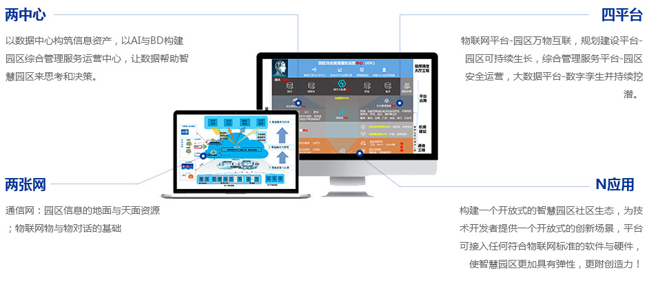 利用5G、IOT、大数据、云计算等技术与设备,优化园区基础建设,实现园区智能化管理。