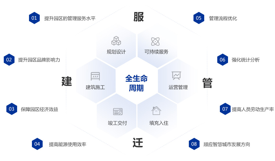通过产业生态构建与园区大数据沉淀,打通产业链,完善服务链,实现园区价值最大化。