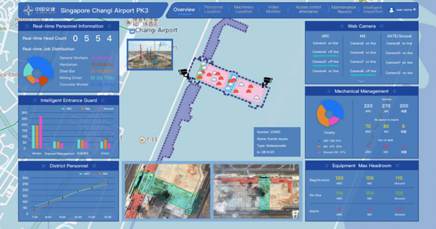新加坡樟宜机场智慧工地项目,搭建了基于北斗的智慧工地综合管理系统平台,建设BIM+GIS的集中信息集成系统,随时监控工程重要数据。