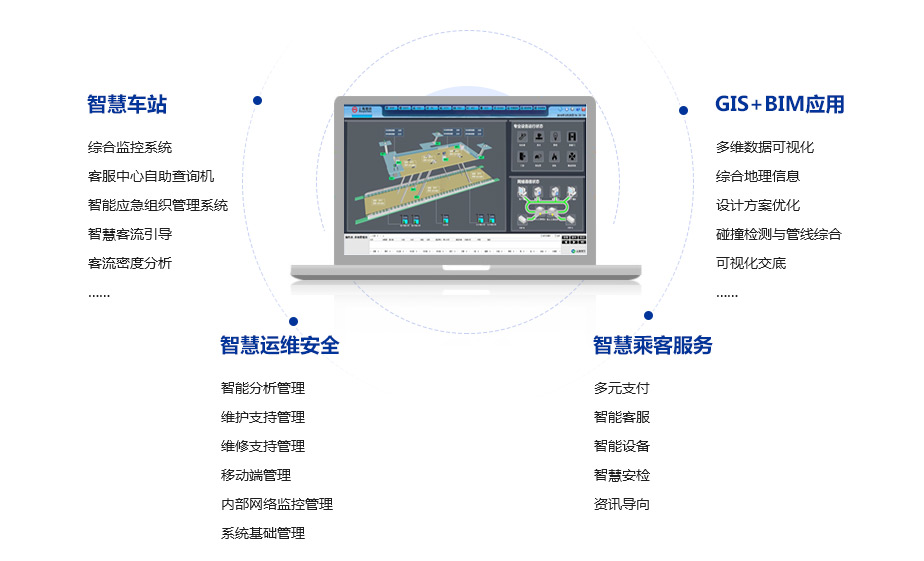 围绕公路、轨交、机场的建设、管理、养护、运营,集成各类先进感知、传输、数据处理技术,应用运营管理与服务模式,为运营管理者提供全生命周期的解决方案及实施服务,为出行者提供动态化、差异化的服务。
