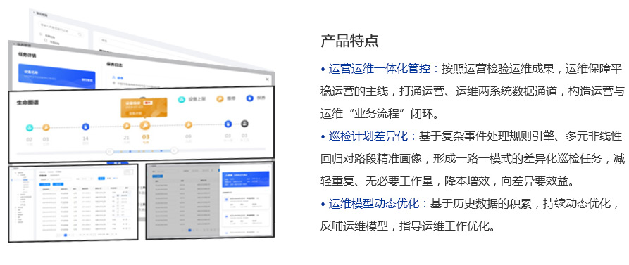 由运营指标、健康指标、资产指标构建评价指标体系,度量全网运行水平,预测设备生命周期,评价公路价值。基于现象匹配原因,自动生成差异化、精细化养护、巡检、维修任务,合理分配有限资源,将经验知识化,知识模型化,以数字模型驱动运营运维一体化。